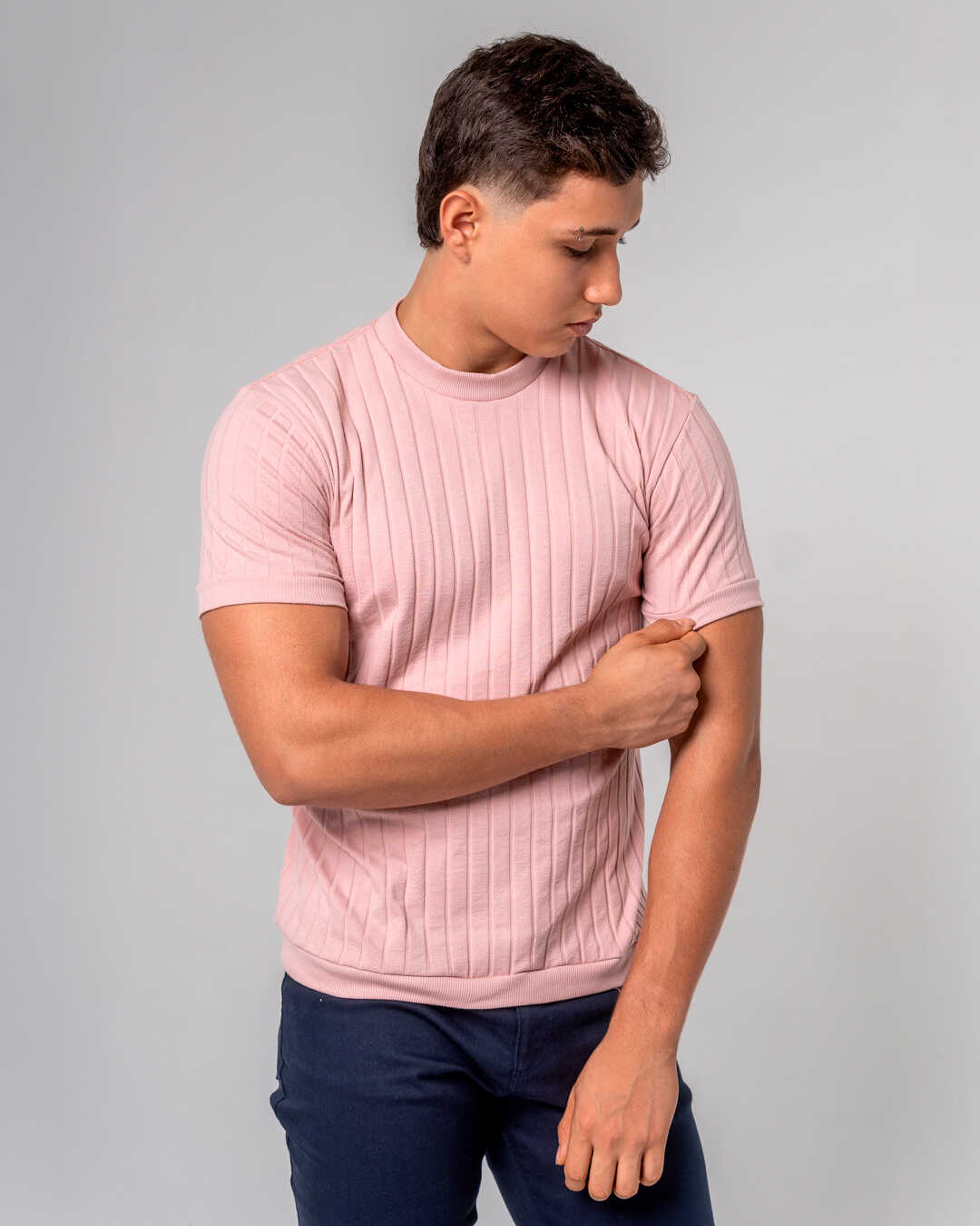Camiseta Básica Acanalada Turín, en corte Slim Fit, confeccionada en tejido de punto acanalado que se adapta al cuerpo con suavidad y confort. La camiseta cuenta con puños, cuello y cintura en Rib, resistente a la deformación y muy suave al tacto