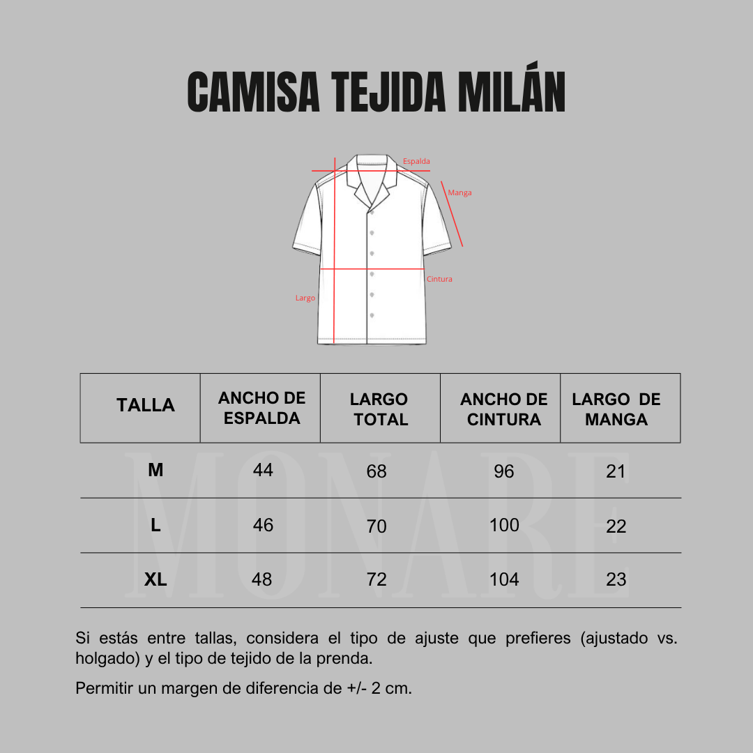 Camisa tejida Milán de manga corta, en corte Regular Fit que brinda libertad de movimiento sin perder estructura. Confeccionada en tejido de punto tipo Rib, ofrece un acabado suave, cómodo y con buena caída.
