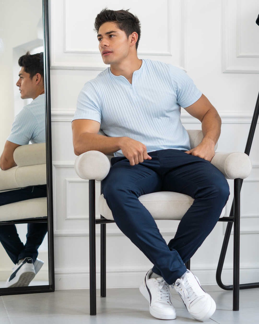 Camiseta Palermo en horma Slim fit, confeccionada en tejido de punto tipo Rib. Tiene cierre invisible en el cuello para mayor versatilidad y un acabado moderno. Prenda ligera, cómoda y con ajuste al cuerpo.
