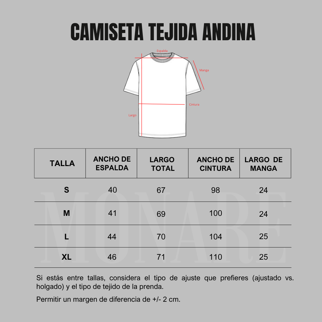 Camiseta tejida Andina en corte Regular Fit, confeccionada en tejido de punto suave y estructurado. Su diseño minimalista rinde homenaje a la elegancia natural de los Andes Colombianos, fusionando sencillez y significado cultural.