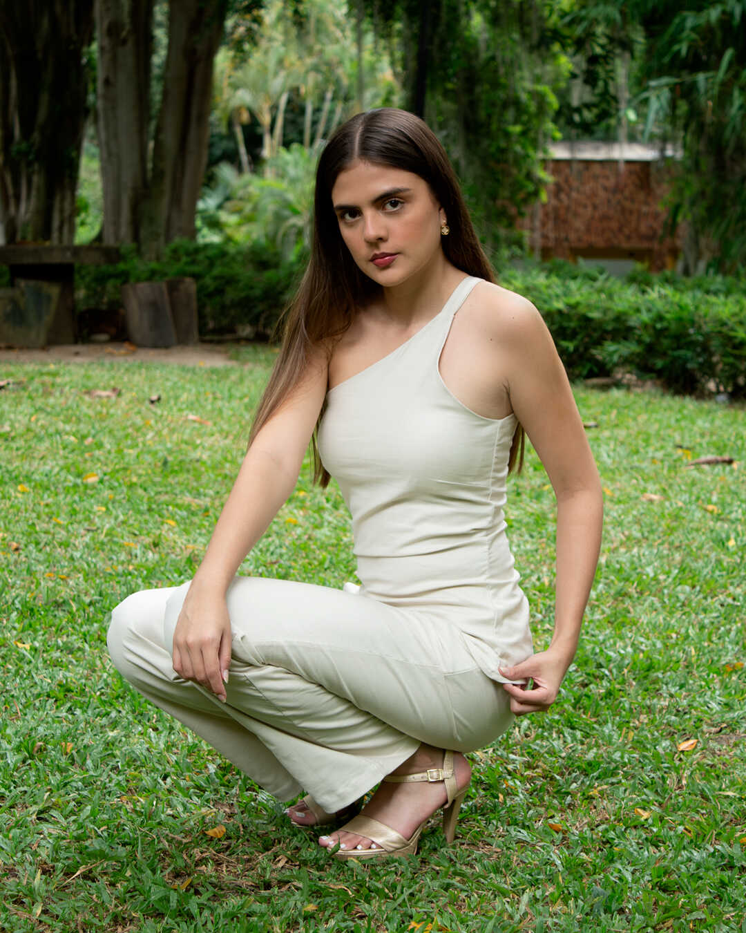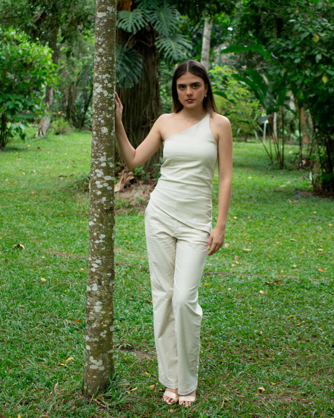 Un set fresco, elegante y cómodo. El top asimétrico resalta el torso con un diseño moderno, mientras el pantalón de tiro alto estiliza la silueta con su bota recta y caída natural. Confeccionado en lino suave, ideal para climas cálidos y para destacar con clase sin esfuerzo.